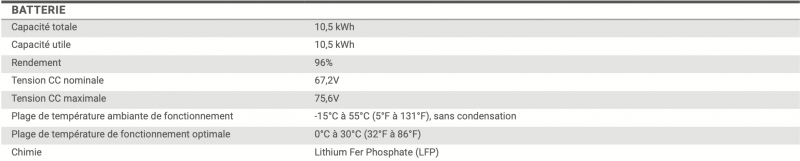 L'IQ Battery 10T répond aux besoins énergétiques les plus exigeants avec sa puissance de sortie nominale de 3,84 kVA et une tension nominale de 230V pour une capacité de stockage de 10,5kWh : cette batterie est conforme aux normes de sécurité les plus strictes. Son système est compatible avec une large gamme d'onduleurs photovoltaïques, dont les IQ8, et offre des fonctionnalités avancées telles que la gestion des déséquilibres de phase et la surveillance via l'application Enphase Installer App.